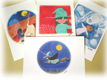 山元加津子先生(石川県の養護学校の先生)が素敵な個展を大阪で開いてくださいました。今回は、モナ(写真左)という女の子が魔女になるために修行しながら、人にとって大事な思いやる気持ちや、やさしさなどいろんなことを感じながら成長していくというお話を絵や、アートで紹介してくださいました。また、先生手作りの本も見せていただきました。とても楽しくて、温かいお話なので、その場で読ませてもらいました。すごくよかったです。はやく出版されて、ぜひ多くのみなさんに読んでもらいたいと思いました。